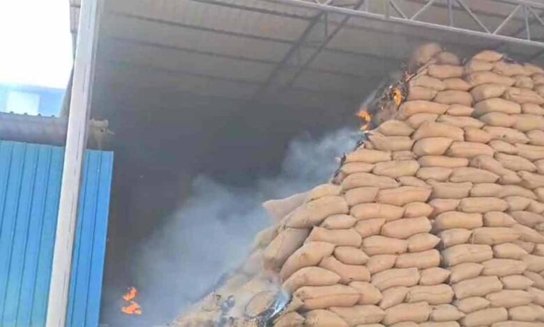 राइस मिल में भीषण आग, लाखों का धान और हजारों खाली बारदाने जलकर राख