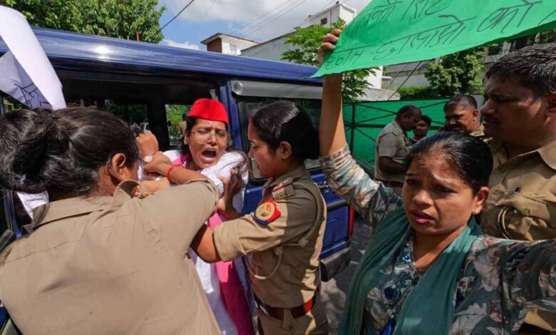 समाजवादी पार्टी की महिला सभा की राष्ट्रीय उपाध्यक्ष डॉ. नेहा यादव के नेतृत्व में भाजपा विधायक केतकी सिंह के गैर-जिम्मेदाराना, असंवेदनशील और मुद्दों से भटकाने वाले बयानों के खिलाफ राजधानी लखनऊ में गुलिस्ता कालोनी स्थित उनके आवास पर ज़ोरदार प्रदर्शन किया गया।
