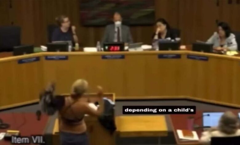स्कूल नियमों के विरोध में बोर्ड मीटिंग में महिला ने किया कपड़े उतारने का विवादित प्रदर्शन; वीडियो वायरल