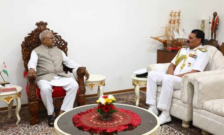 राज्यपाल पटेल से एडमिरल दिनेश कुमार त्रिपाठी ने की सौजन्य भेंट