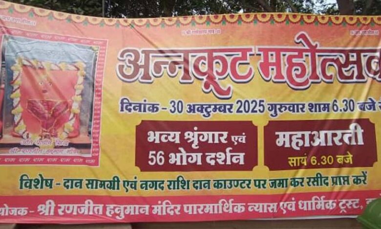 रणजीत हनुमान मंदिर में 30 अक्टूबर को अन्नकूट महोत्सव, 50 क्विंटल आटा और 60 क्विंटल सब्जी से तैयार होगी भोग, 101 मंदिरों में वितरण