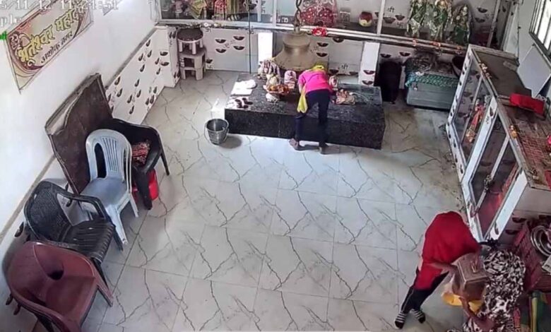 मंदिर से दानपेटी चोरी: लड़कियाँ CCTV कैमरे में हुईं कैद