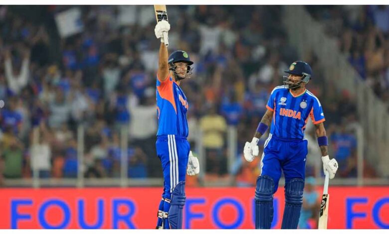 पहले बल्लेबाजी करने उतरी भारतीय टीम को अभिषेक शर्मा के रूप में पहला झटका लगा। अभिषेक बिना खाता खोले पवेलियन लौट गए। जारी विश्व कप में लगातार तीसरे मैच में अभिषेक शर्मा का खाता नहीं खुला। सलामी बल्लेबाज ईशान किशन 7 गेंद में 18 रन बनाकर आउट हुए। तिलक वर्मा 27 गेंद में 31 रन बनाकर पवेलियन लौटे। उन्होंने अपनी पारी में तीन चौके और एक छक्का लगाया। कप्तान सूर्यकुमार यादव 28 गेंद में 34 रन बनाकर पवेलियन लौटे। शिवम दुबे 31 गेंद में 66 रन बनाकर आउट हुए। उन्होंने अपनी पारी में चार चौके और 6 छक्के लगाए। हार्दिक पांड्या ने 21 गेंद में 30 रन का योगदान दिया। रिंकू ने 6 रन बनाए।