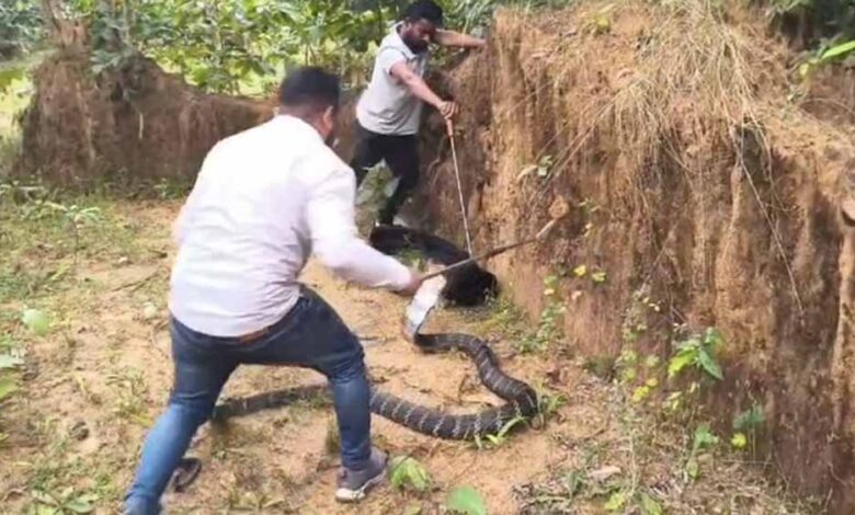 कोरबा जिला अपनी समृद्ध जैव-विविधता और दुर्लभ वन्यजीवों के लिए जाना जाता है। यहां कई बार ऐसे जीव देखने को मिलते हैं जिनसे आम लोग चकित रह जाते हैं। इसी कड़ी में जिले के पासरखेत गांव में विशालकाय किंग कोबरा देख लोगों के होश उड़ गए। अचानक इतने बड़े विषधर सांप को देखकर ग्रामीणों में दहशत फैल गई और लोगों की भीड़ इकट्ठा हो गई।