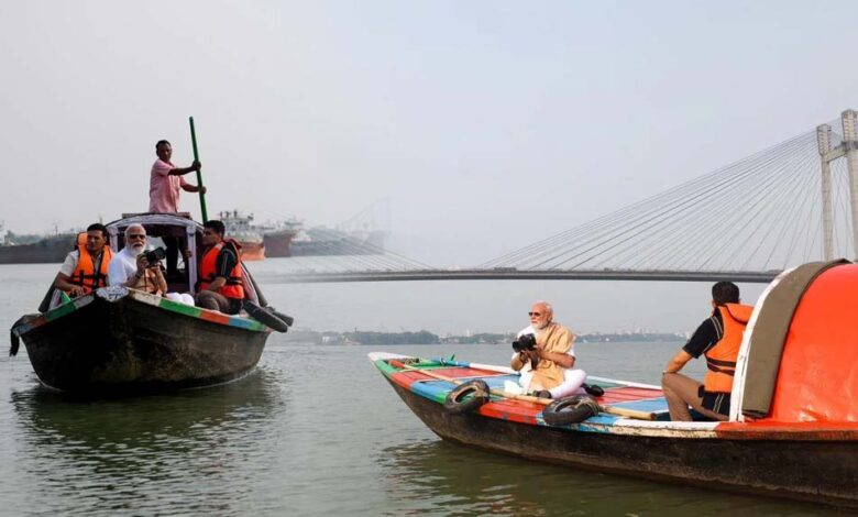 हुगली नदी के भ्रमण के दौरान प्रधानमंत्री नरेंद्र मोदी हाथ में कैमरा थामे हुए नाव की सवारी कर रहे थे। उन्होंने हुगली के तट से भी कुछ और शेयर कीं, जहां वे लोगों से मिलते हुए नजर आए। पीएम मोदी ने नदी के तट पर घूमने वाले लोगों का अभिवादन भी स्वीकार किया।