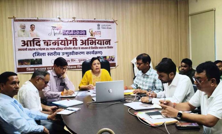 बताया गया कि जिले में आदि कर्मयोगी अभियान के तहत 46 ग्राम पंचायतों के हितग्राहियो का चिन्हांकन कर लिया गया है। इसके साथ ही इन ग्राम पंचायत के सरपंच व सचिव का ओरिएंटेशन कार्यक्रम भी कराया गया है। अभियान के तहत प्रत्येक चयनित ग्राम में आदि सेवा केंद्र स्थापित किये जाएंगे जो शासकीय सेवाओं की प्रदायगी एयर जनभागीदारी को बढ़ावा देने का केंद्र बनेंगे। चरणबद्ध प्रशिक्षण कार्यक्रम आयोजित किये जाएंगे जिसमें स्थानीय जनप्रतिनिधि, एनजीओ, स्वयं सेवी संगठन और युवाओं को शामिल किया जाएगा। आदि कर्मयोगी अभियान के तहत  विकास कार्य तीन स्तर पर क किया जाएगा जिसमें पहला आदि कर्मयोगी तैयार करना है। इसमें प्रशासनिक अमले से जिला स्तरीय एवं ब्लॉक स्तरीय मास्टर ट्रेनर तैयार किए जाएंगे। दूसरे क्रम में आदि सहयोगियों की टीम बनाई जाएगी।आदि सहयोगी  ग्राम स्तर पर कार्य करेंगे जिसमें शिक्षक, आंगनवाड़ी कार्यकर्ता, चिकित्सक, युवा नेता, सामाजिक मुखिया जैसे व्यक्ति ग्राम के विकास की रूपरेखा व्यक्तिगतमूलक, पारिवारिकमूलक एवं समुदाय मूलक अनुसार तैयार करेंगे। तीसरे क्रम पर आदि साथी होंगे जिन्हें योजनाओं का लाभ दिया जाना है। उल्लेखनीय है कि जनजातीय अंचलों में सेवा, समर्पण और सुशासन की भावना के साथ शासकीय योजनाओं का प्रभावी क्रियान्वयन सुनिश्चित करने के उद्देश्य से जनजातीय कार्य मंत्रालय के द्वारा पिछड़े और जनजातीय बाहुल्य ग्रामों में शासन की योजनाओं को अंतिम व्यक्ति तक पहुंचाने के कार्य को नई दिशा देने हेतु एक नई पहल की गई है जिसे “आदि कर्मयोगी अभियान”नाम दिया गया है। कार्यशाला में डीएफओ धम्मशील गणवीर सीईओ जिला पंचायत सुश्री दिव्या अग्रवाल सहित विभिन्न विभागों के जिला अधिकारी, जनपद सीईओ ऑनलाइन जुड़े थे।