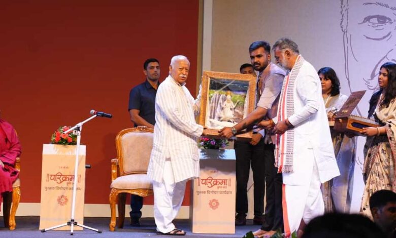 विमोचन कार्यक्रम के मुख्य अतिथि डॉ. भागवत ने कहा, ‘नर्मदा परिक्रमा में जो कुछ प्रहलाद जी को बोध मिला होगा, उस बोध (पुस्तक) को सरसरी तौर पर जो मैंने पढ़ा है, उसमें तो यही है कि मैं और मेरा छोड़ो; अंतःकरण पवित्र करो. स्वार्थ बिल्कुल मत रखो. कर्तव्य, कर्म करते चलो, सबको अपना मानकर चलते जाओ.’