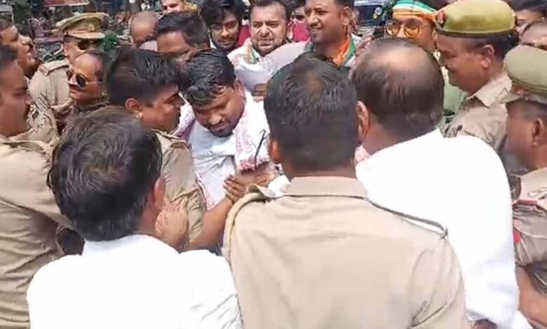 सीएम योगी तक ज्ञापन नहीं पहुंचा, पुलिस और कांग्रेसी कार्यकर्ताओं में सड़क पर हुई तीखी नोकझोंक