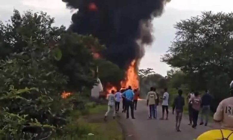 अनियंत्रित टैंकर पलटा, आग और धमाके से मचा हाहाकार